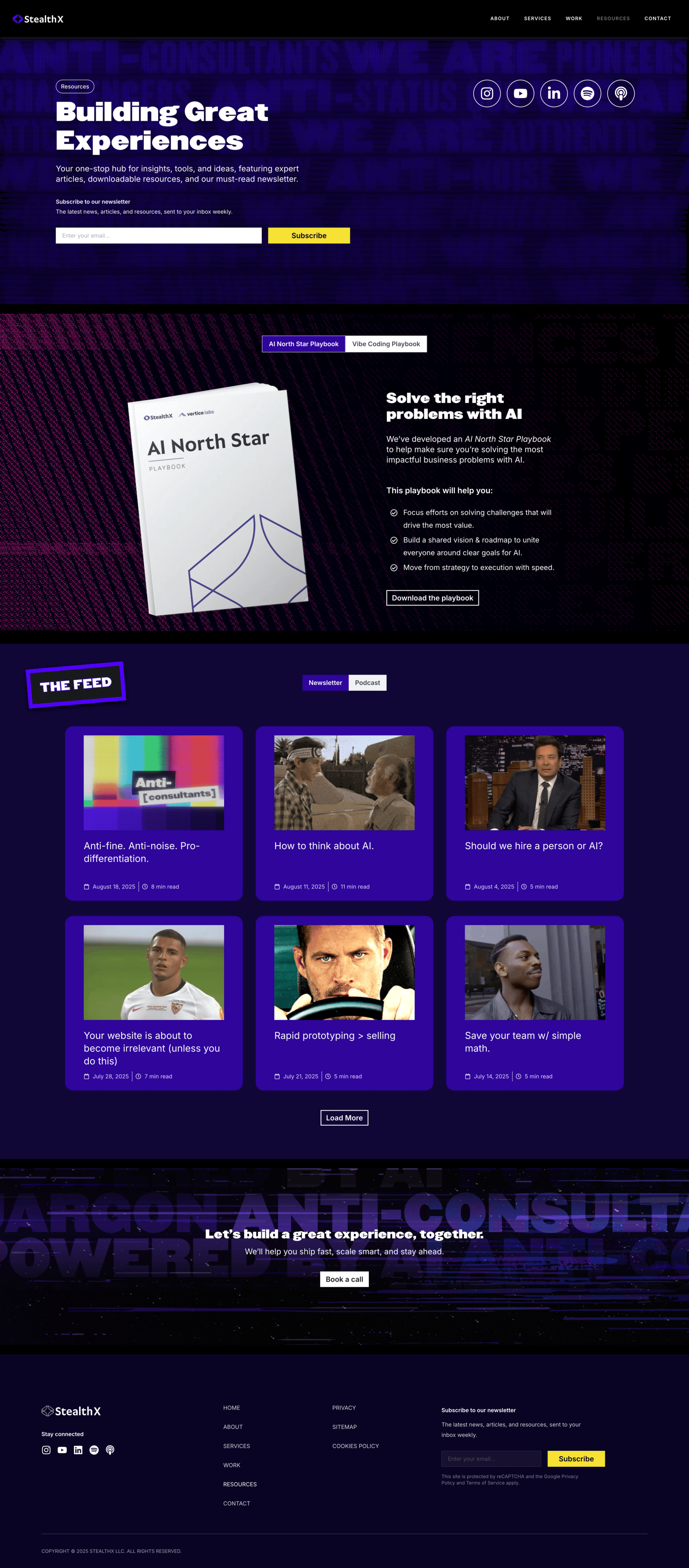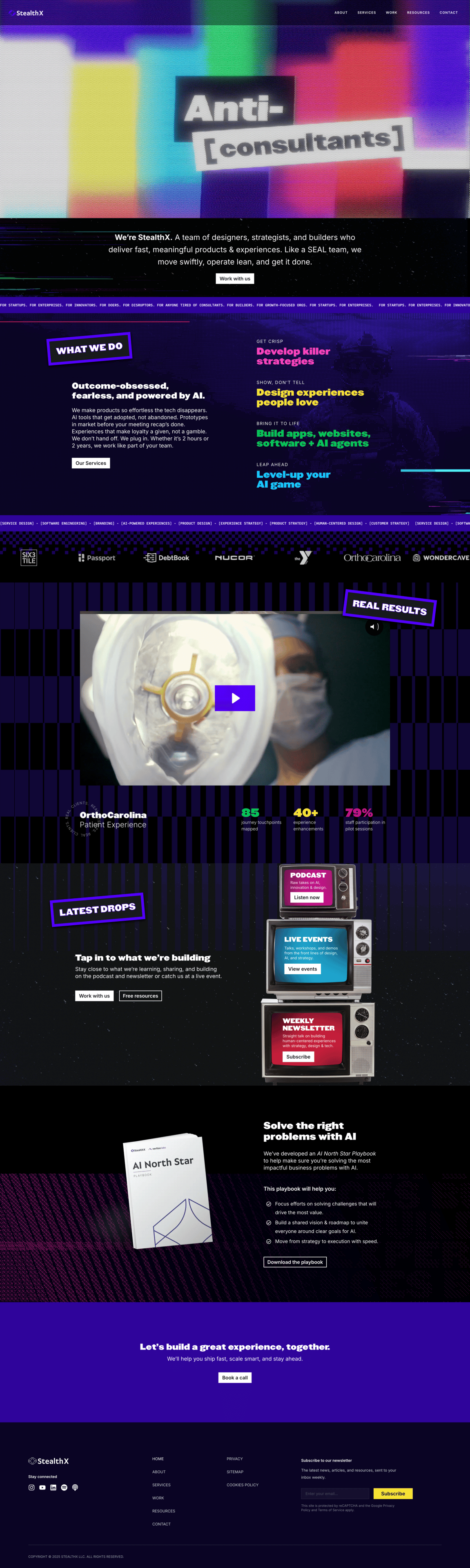 The new StealthX homepage showcasing our enhanced positioning and visual language.